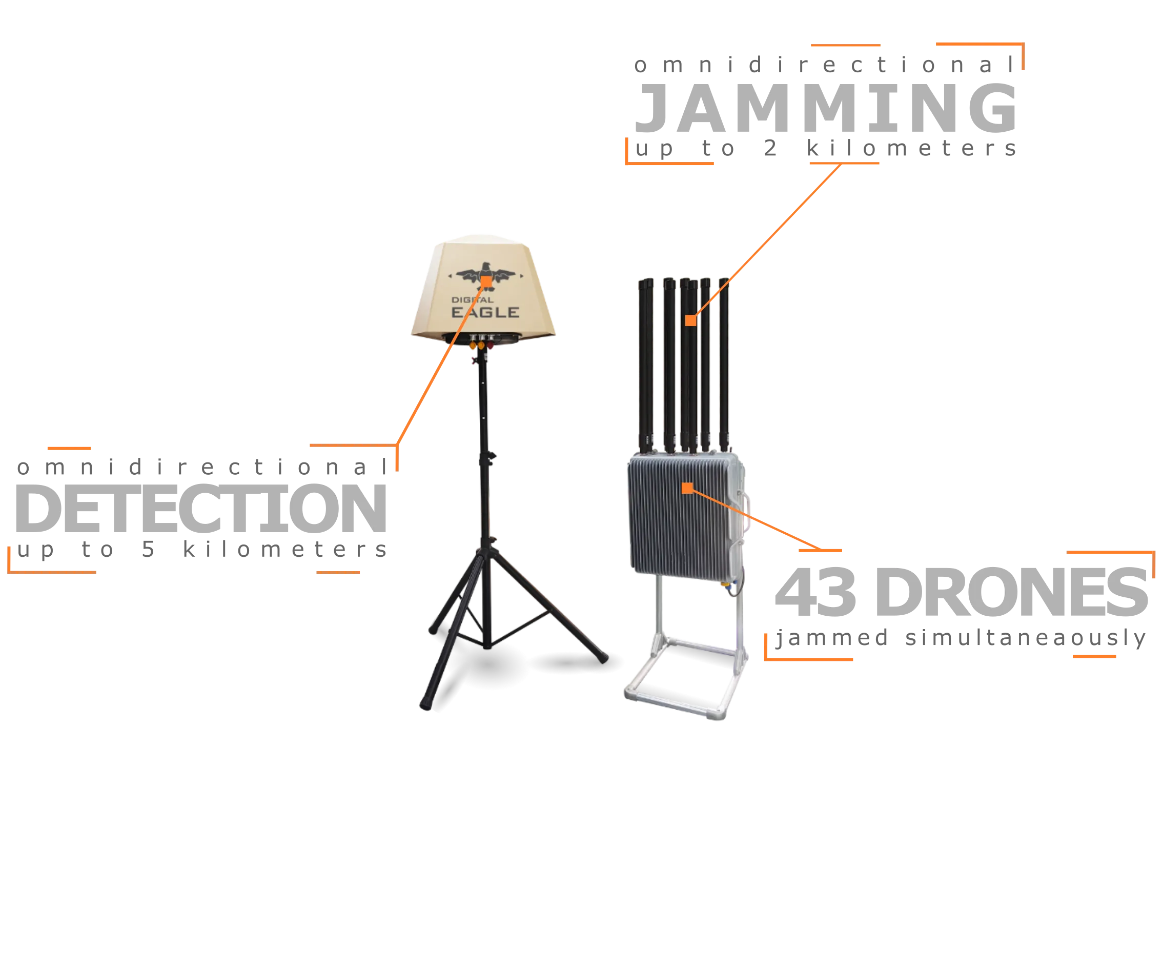 QR-15 Patrol Unit: omnidirectional drone detection (5 km) and jamming (2 km) integrated into a single mobile system.